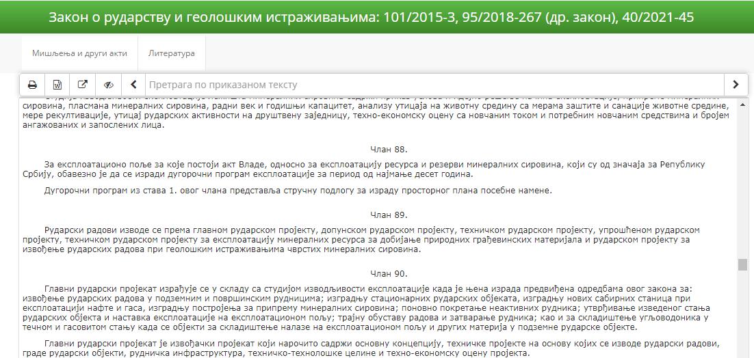 28. Službeni glasnik Republike Srbije. Prostorni plan područja posebne namene za realizaciju projekta eksploatacije i prerade minerala jadarita „Jadar” broj 26 (2020).
